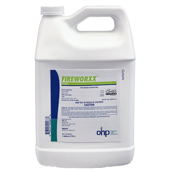 Fireworxx is a fast-acting, post-emergent herbicide. It offers a quick burndown of broadleaf weeds, grasses, algae and mosses. This organic herbicidal soap is made up of a fatty acid blend of caprylic and capric fatty acids that works by disrupting plant cell walls and removing the waxy protective covering on the leaf tissues. Dehydration, leaf and stem collapse and death will quickly follow. Fireworxx is non-selective and is not translocated, it will only burn those parts of the plant that come in contact with the spray solution. Care should be taken to avoid contact with desired plants.