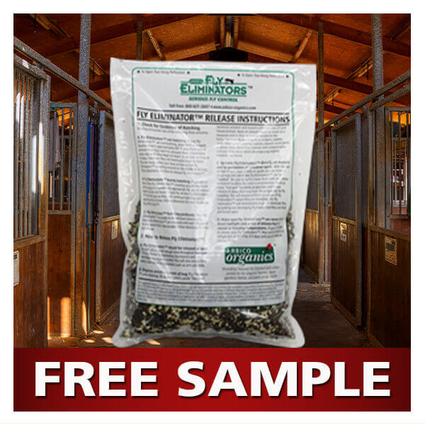 We invite you to try a free trial sample of our flagship product - Fly Eliminators® biological fly control. One test and you will see why so many customers return to us year after year. The package size offered provides enough Fly Eliminators to control flies when you have 2 - 5 horses (1/2 unit). One shipment will provide fly relief for 2 - 4 weeks, depending upon your specific fly situation. If you require a sample for a larger number of animals or have questions about the product, please call us at 1-800-827-2847.