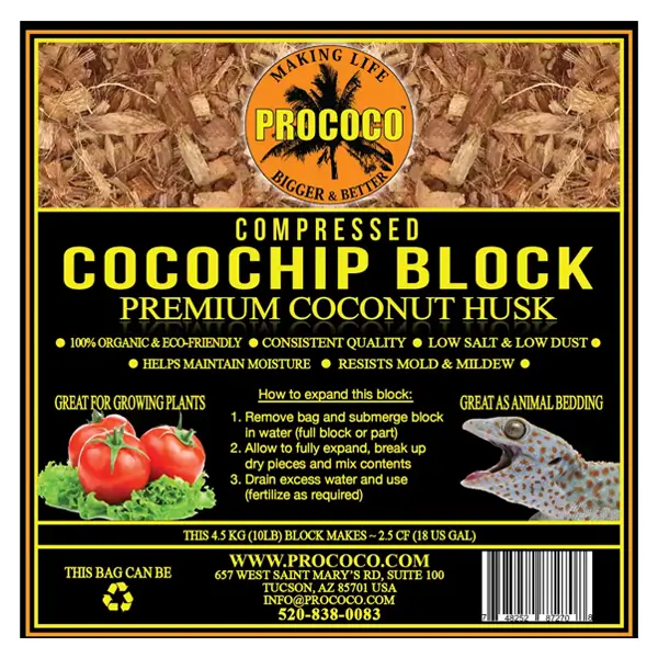 Made from the natural byproducts of coconut cultivation (crushed coconut husks), this premium coconut coir product is a renewable and sustainable alternative to peat moss (sphagnum). Prococo CocoChip's high moisture retention, mildly acidic pH and long-term effectiveness make it a fantastic choice for bedding, soil mediums, soil amendments and landscaping uses. Advantages to using coconut coir are numerous: