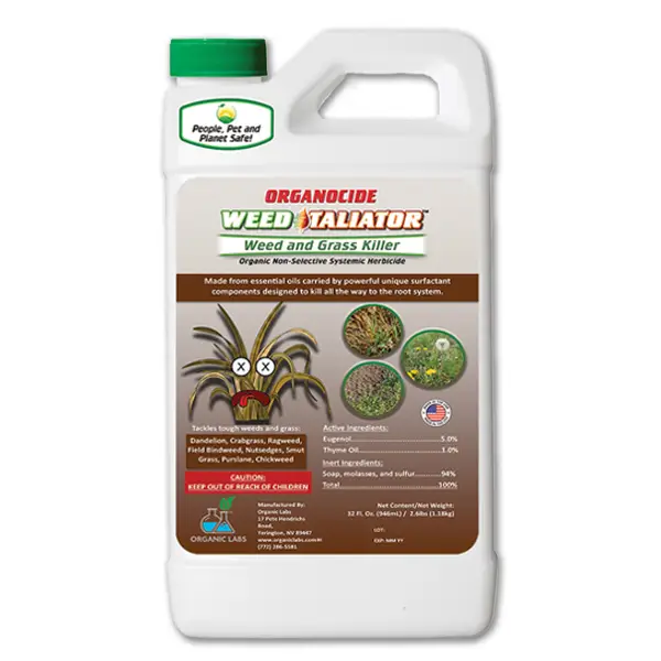 Proudly made in the USA, Weed Taliator is a systemic and broad-spectrum herbicide to tackle the toughest weeds. Comprised of thyme and eugenol essential oils that are paired with an exceptional surfactant, it will deliver control down to the roots of weeds. Choose from the RTU spray (just shake and apply) or the concentrated formulation to control weeds in driveways, walkways, mulch and gravel beds, patios, pavers, fence lines, around shrubs and trees, and areas where unwanted weeds and grass are present.
